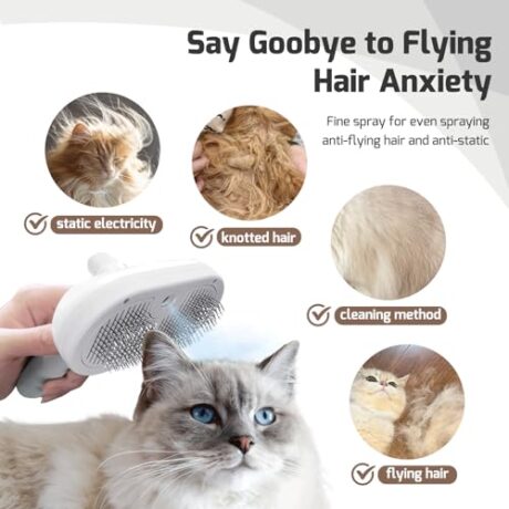 Steam Cat Brush for Shedding, 3 In 1 Steam Cat Brush Self Cleaning Dog Brush for Long and Short Hair Dogs and Cats Pet Grooming Brush Remove Tangled Loose Hair (White)