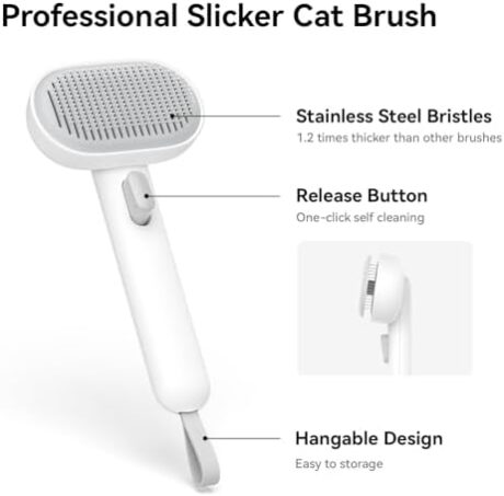 aumuca Cat Brush for Shedding, Cat Brushes for Indoor Cats, Cat Brush for Long or Short Haired Cats, Cat Hair Brush Cat Grooming Deshedding Brush for Dog Kitten Horse Massage Removes Loose Fur, White