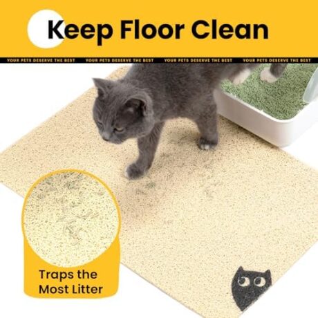 Cat Litter Mat Litter Trapping Mat, Premium Durable PVC Cute Cat Litter Box Mat, Non-Slip, Less Waste Kitty Litter Mat, Soft on Kitty’s Paws, 24”x 17” cat matts for Litter