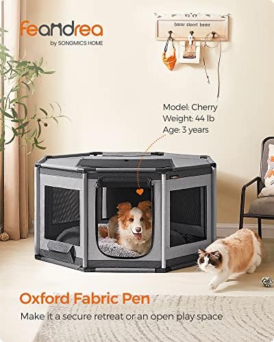 Feandrea Dog Playpen, Oxford Fabric Dog Fence, Octagon Dog Crate, L, 44.1 x 44.1 x 24.4 Inches, PVC Pipe Frame, Breathable Mesh, Double Openings, Dove Gray and Slate Gray UPDC003G01