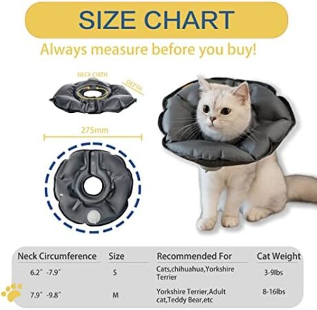 MayMaw Inflatable Cat Cone, Foldable Cat Cone Collar Soft After Surgery for Kittens Lightweight Elizabethan Collar for Cat Prevent from Licking Wounds (Grey- Medium)