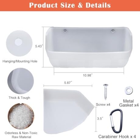 4 Pack Chicken Feeder Feed Trough with Clips Hanging Fence Feeders for Goat Duck Sheeple Piglets Horse (White 4pcs Set)