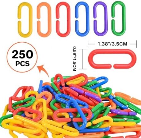 Sukh 250pcs Plastic C Clips Hooks Chain Links – Interchangeable Rainbow C-Links for Pet Parrot Parakeets Rat Sugar Glider Small Bird Cage Toys, Children Learning Supplies.