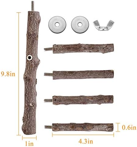 Bird Perch Stand Toy, Natural Wood Parrot Perch Bird Cage Branch Perch Accessories for Parakeets Cockatiels Conures Macaws Finches Love Birds (M: 10″ Length)