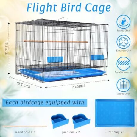 Layhit 4 Pcs Flight Bird Cage Foldable Metal Bird Crate with Food Boxes and Standing Posts Iron Parrot Cage Black Bird Cage for Small Parrots Parakeets Cockatiels Budgies Conures Quaker Finches