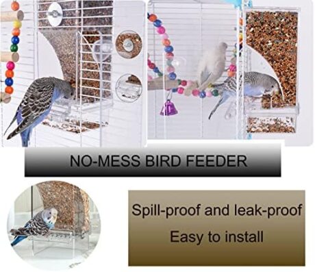 No Mess Bird Cage Feeder Automatic Acrylic Parrot Feeder Bird Cage Accessories for Parakeets Canary Cockatiel Finch (Transparent)