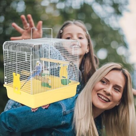Small Bird Cage, Lightweight for Parakeets, Hanging for Parrot, Travel for Cockatiel, Outdoor Budgie, Pet Products Flat Top Economy Small Animal Cage with Stand Accessories with White Wire, Yellow