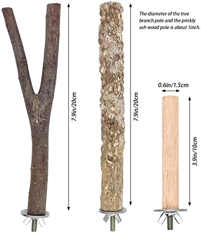 6 PCS Natural Wood Bird Perch Parrot Stand Fork Toys, Hanging Multi-Branch Perch Bird Cage Accessories for Small Parakeets, Conures, Cockatiels, Budgies, Finches, 3 Types