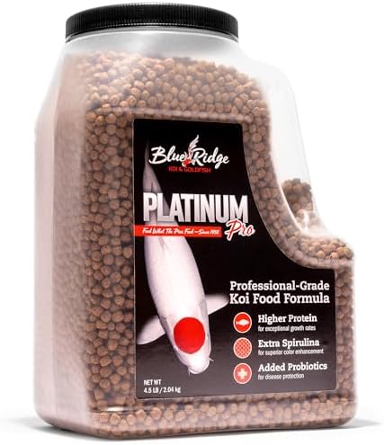 Blue Ridge Koi Fish Food 4.5lb – Koi Food 3/16” Platinum Pro Formula Goldfish Food, Premium Fish Food for Ponds, Floating Pond Pellets Fish Food