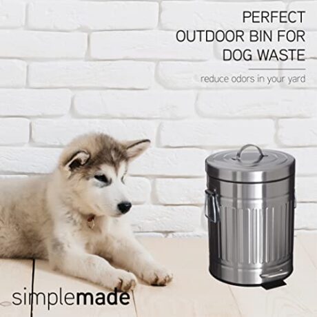 SIMPLEMADE Round Step Trash Can – 5 Liter / 1.3 Gallon – Stainless Steel Bathroom Trash Can, Small Trash Can with Lid, Metal Wastebasket, Galvanized Steel