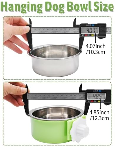 kathson Crate Dog Bowl, Removable Stainless Steel Hanging Pet Kennel Cage Bowl Food & Water Feeder Coop Cup for Puppy, Cat, Rabbit,Guinea Pigs 2pcs (Blue,Green)