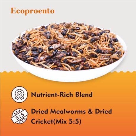Ecoproento Bearded Dragon Medley Treat Food- 3oz Dried Cricket & Dried Mealworms – High Protein Food and Treats for Bearded Dragons, Monitors, Box Turtles, Birds and Hedgehogs
