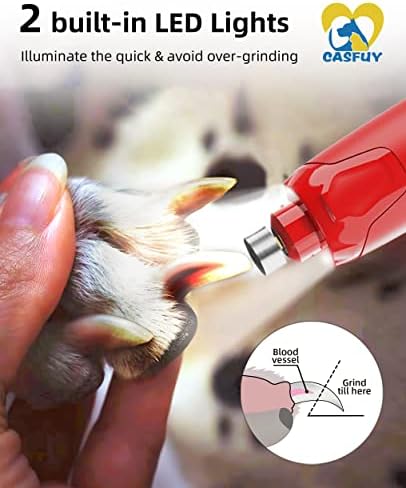 2 Built-in LED Lights, Avoid Over-trimming: 2 LED lights of Casfuy pet nail grinder give clarity to the grooming session, helping you find the quick and avoid hurting pets. It can be easily recharged with AC adapter, laptop, or other power source. It lasts up to 4 hours on a full charge.