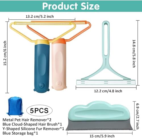 Package Includes a silicone Y-shaped dog hair remover for car, a TPR cloud-shaped brush and a blue storage bag. These 3 kinds of carpet hair removal tool can deal with different fabric surfaces and give you more options.