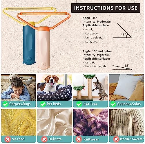 ✪Y-shaped silicone carpet scraper has a double-sided silicone brush head, one side can clean pet hair and the other side can smooth carpets easily.
