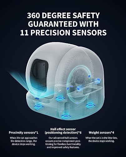 100% SAFE FOR CATS: With several safety mechanisms as well as excellent smart sensors, the xSecure system offers your cat a safe potty experience. It consists of infrared sensor, weight sensors, remote alerts, an accident protection system, and smart detection to keep your cats safe. In addition, It automatically pauses when your cat approaches or detects a weight change. Warm Tips: Applicable weight range for cats: 1.5kg to 8kg, do not use for young pets under 6 months.
