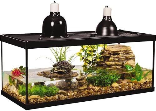 Part of being a great pet owner is providing a thriving environment. Tetra Aquatic Turtle Deluxe Kit includes the essentials needed to get started with your new turtle. Also great for frogs and newts, this 20-gallon terrarium environment with filter and heating lamps incorporates a basking platform for your pet’s pleasure. Make this great tank a feature piece in your home. Along with a 20-gallon glass aquarium, your kit includes all of these essentials: Tetrafauna Decorative ReptoFilter with three cartridges, two 5. 5-inch dome lamps with bulbs, Tetrafauna Turtle Terrace Basking Platform, a boxwood plant mat, a screen top with locking clips and Tetra product samples. Place your reptile kit in a location close to an electrical outlet to allow the use of lights and filters. The kit should not be placed near heating or air conditioning ducts, or in direct sunlight, as this can cause the temperature inside the habitat to fluctuate, and direct sunlight can cause algae growth. Since 1951, Tetra has developed the world’s most comprehensive body of fish food knowledge, and fishkeeping enthusiasts have looked to the brand for products and solutions that add ease and beauty to their home. Whether you’re an experienced hobbyist or just starting out, Tetra has everything you need – from a large variety of quality fish food and innovative equipment to test kits and decor.